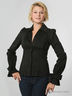 Детали: отложной ворот-стойка, V-образный вырез горловины, длинный рукав, застежка на пуговицы на полочке, манжеты на резинке с бантиками