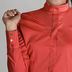 Роскошная женская блуза яркого алого цвета из хлопковой ткани новой коллекции весна-лето 2010. Спереди и на спинке рубашки выполнены две вытачки, подчеркивающие линию талии. Воротник-стойка, на планке потайная застежка на пуговицы. На манжетах выполнена застежка на три цветные пуговицы, что добавляет рубашке некую изюминку. На рукавах в районе плеча оригинальный элемент декора - маленькие козырьки, которые подчеркивают общий стиль рубашки.