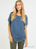 Легкая блуза имеет округлый вырез горловины и короткие рукава. Спереди изделие украшено кружевным узором. Низ ассиметричного кроя. Отличный вариант для создания повседневного романтичного образа.