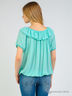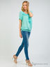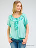 Блуза с короткими рукавами и округлым вырезом горловины. Модель свободного кроя выполнена из качественного материала привлекательной расцветки. Отличный вариант на каждый день. Спереди блуза декорирована рюшами.