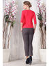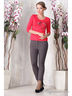 Блузка с рукавами длиной 3/4 и округлым вырезом горловины выполнена из ткани, приятной на ощупь. Модель прямого кроя украшена контрастным рисунком.