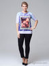 Превосходная блузка, выполненная из качественного материала. Модель с короткими рукавами и округлым вырезом горловины. Украшена контрастным рисунком. Отличный вариант на каждый день.