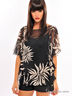 Шелковая блуза свободного кроя с короткими рукавами и округлым вырезом горловины. Декорирована модель цветами и рюшами по бокам. Отличный вариант для вашего гардероба.