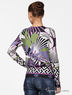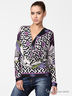 Стрейчевая блуза на подкладе, с длинными рукавами, отложным воротом и контрастным фольклорным принтом. Низ блузы- широкая кокетка, верх - топ с асимметричной драпированной горловиной. Отличный вариант для Вашего гардероба.