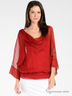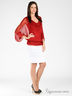 Шелковая блуза свободного кроя "летучая мышь", с широкими длинными рукавами. Сзади ворот на мягких складках, открывает спину. Низ - широкий манжет на ленте-поясе.