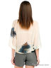 Легкая прозрачная блузка с рукавами 3/4. Подол и концы рукавов подобраны на резинку. Украшена оригинальным принтом.
