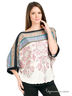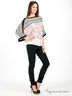 Блузка "летучая мышь", 3/4 рукава, ворот "лодочка", декорирована ярким цветочным орнаментом.