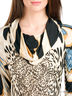 Блузка свободного кроя "летучая мышь", с длинными широкими рукавами отложным воротом, декорирована "тигровым" ярким принтом.