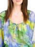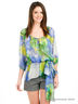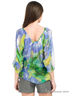 Шелковая блузка свободного кроя "летучая мышь", с рукавами 3/4, с широким вырезом. Декорирована небольшим вырезом и пуговицей по передней планке. Подвязывается легким поясом.