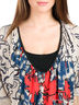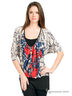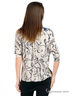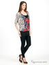 Свободная блузка с рукавами на 1/3, с глубоким круглым вырезом, слегка собранным на сборку. По низу декорирован широким контрастным манжетой.
