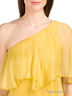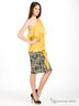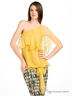 Легкая блузка без рукавов через одно плечо, и на одной бретельке. По линии верха отсрочена широкой оборкой. По подолу - на широком поясе, который завязывается с левой стороны. Под блузой подшита трикотажная майка, повторяющая силуэт блузки.