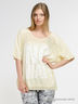 Очень симпатичная блузка нежной расцветки - вещь, которая достаточно универсальна. Блузка с короткими рукавами свободного кроя, изящным вырезом горловины. Декорирована модель принтом и кружевом. Отличный вариант для женского гардероба.