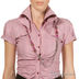 Элегантная приталенная блуза из эластичного хлопкового материала с коротким рукавом. Добавление эластичной нити в материал обеспечивает лучшую посадку изделия по фигуре. Обратите внимание на авторский крой воротника - стойки: уголки не завершены, как обычно, а продлены в единую деталь и закреплены в плечевых швах и проймах. Застежка на мелкие пуговицы, вдоль планки выполнена небольшая драпировка.