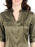 Детали: ворот-стойка; застегивается на кнопки; два накладных кармана с клапанами на кнопке; на плечах декоративные нашивки из металлической цепочки; дополнена оригинальной брошью с цепочками