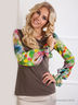 Изящная блузка прямого силуэта. Модель с округлым вырезом горловины, длинные втачные рукава выполнены из шифона с ярким цветочным фото-принтом, присборены к низу. Изделие, выполненное из легкого материала, станет прекрасным украшением Вашего гардероба.