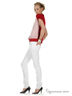 Блуза, выполненная из шикарного натурального шелка, в сочетании с хлопковым трикотажем создает особое настроение расслабленной непринужденности. Круглый воротничок и маленькие рукава «фонарики». Комфортный объем блузки собран по низу на широкий манжет, укрепленный изнутри резинкой. Классическая планка-поло заканчивается не закрепленным узким галстуком.