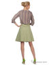 Полуприлегающий приталенный силуэт. Рукав три четверти заканчивается фигурным вырезом. Оригинальная вытачка на уровне локтевого сгиба. Вырез-лодочка с большим округлым воротником. Бант самовяз внесет романтику в ваш образ.