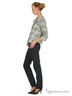 Полуприлегающий приталенный силуэт. Рукав три четверти заканчивается фигурным вырезом. Оригинальная вытачка на уровне локтевого сгиба. Вырез-лодочка с большим округлым воротником. Бант самовяз внесет романтику в ваш образ.