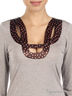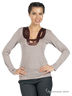 Гламурная трикотажная блузка – это не нонсенс, а реальность! Секрет в сочетании фактур полотна - комфортный трикотаж и атласная фигурная отделка, которая избавит вас от необходимости в дополнительных аксессуарах. Нейтральный цвет трикотажа прекрасно сочетается практически с любым другим цветом и не вызовет никаких затруднений в создании Вашего образа!