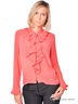 Изделие выполнено из полупрозрачного шифона. Застежка на полочке на пуговицы. Полочка декорирована манишкой.