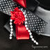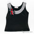 Блуза выполнена из эластичной трикотажной ткани, круглый вырез горловины украшен широкой полоской из хлопка контрастного цвета. Дополнительный шарм придает приколотая брошь - композиция из разного цвета атласных ленточек и бусин.