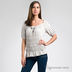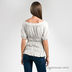Тонкая мягкая трикотажная ткань. Прилегающий силуэт. Короткий рукав-реглан с манжетой на резинке. Широкий вырез горловины "каре". Изделие дополнено несколькими рядами резинок. На полочке пришит декоративный бант.