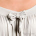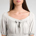 Тонкая мягкая трикотажная ткань. Прилегающий силуэт. Короткий рукав-реглан с манжетой на резинке. Широкий вырез горловины "каре". Изделие дополнено несколькими рядами резинок. На полочке пришит декоративный бант.
