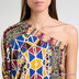 Блузка женская синего цвета. Тонкий мягкий трикотаж, свободный крой. Ассиметричный крой лифа: Одно плечо остается оголенным, второе с цельнокроеным рукавом. Низ изделия "посажен" на широкую резинку.