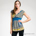 Блузка женская синего цвета. Тонкая трикотажная ткань, приталенный крой. Лиф отрезной с запахом. Рукав короткий, приспущенный. Линия талии подчеркнута многорядными резинками.
