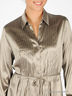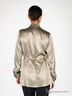Атлалсная блуза прямого кроя. Отложной воротник. Длинный рукав. Присборенный на манжетах. Декорирована драпировкой на груди. Тонкий поясок на талии.