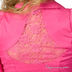 Блуза с коротким рукавом. Спереди V-образный вырез, застежка на пуговицы. На рукавах-фонариках манжеты шириной 7 см. Оригинальная деталь модели — кружевные вставки спереди и на спинке.