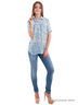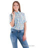 Легкая летняя блуза выполнена в яркой расцветке. Манжет рукава застегивается на пуговичку. Спереди модель дополнена застежкой на пуговицы. Отличный вариант на каждый день. Длина рукава 22 см, длина изделия 71 см.