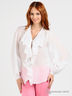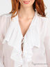 Детали: ворот стойка; длинный широкий рукав с манжетой; завязки спереди; декорирована оригинальными воланами