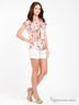 Легкая шелковая блуза свободного силуэта. Очень короткий цельнокроеный рукав. Глубокий вырез. Окантовка ворота в виде широкой ленты, завязывается в декоративный бант.