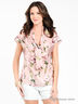 Легкая шелковая блуза свободного силуэта. Очень короткий цельнокроеный рукав. Глубокий вырез. Окантовка ворота в виде широкой ленты, завязывается в декоративный бант.
