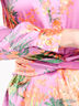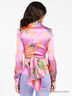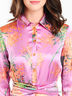 Детали: отложной ворот; длинный рукав с манжетой; застегивается на пуговицы; широкий пристроченный пояс; оригинальный принт