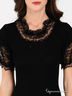 Детали: округлый вырез горловины и короткий рукав дополнены кружевными вставками с атласными лентами