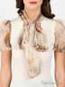 Детали: v-образный вырез горловины, короткий рукав-фонарик, пристроченный шифоновый шарф