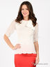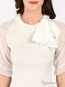 Детали: округлый вырез горловины дополнен кулиской с шифоновой лентой, короткий рукав-реглан присборен на резинку