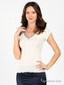 Детали: v-образный вырез горловины декорирован кружевной вышивкой, короткий прямой рукав, края изделия обработаны оверлоком