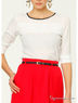 Очаровательная блуза с рукавами 3/4 и округлым вырезом горловины. Модель прямого кроя выполнена из качественного материала привлекательной расцветки. Отличный вариант на каждый день.
