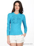 Детали: длинный рукав; полочка дополнена планкой с пуговицами, декорирована оригинальными оборками