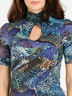 Детали: воротник "хомут", короткие рукава с широкими манжетами, спереди элегантный вырез