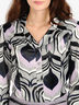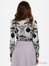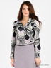 Детали: воротник-стойка с v-образным вырезом, длинные рукава с манжетами на пуговицах, застегивается на пуговицы, оригинальный принт