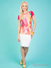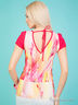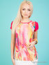 Блуза с короткими рукавами и округлым вырезом горловины. Модель свободного покроя выполнена из ткани контрастной расцветки. Отличный вариант на каждый день.