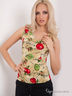 Очаровательный топ с короткими рукавами и округлым вырезом горловины. Модель выполнена из яркой ткани контрастной расцветки. Отличный вариант на каждый день.