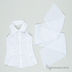 Детали: американская пройма, отложной ворот-стойка, застежка на пуговицы, полочка декорирована рюшами, пояс в комплекте