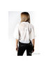 Короткая шифоновая однотонная блуза свободного кроя, с широкими рукавами"летучая мышь". Декорирована модель классическим воротником, пуговицами и ажурной гипюровой вставкой на спине. Будьте всегда неотразимой!