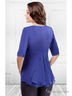 Замечательная блуза с рукавами 3/4 и округлым вырезом горловины. Модель облегающего фигуру кроя выполнена из качественного материала привлекательной расцветки. Сзади изделие украшено эффектной драпировкой из контрастной по фактуре ткани. Отличный вариант на каждый день.