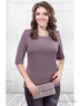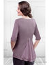 Замечательная блуза с рукавами 3/4 и округлым вырезом горловины. Модель облегающего фигуру кроя выполнена из качественного материала привлекательной расцветки. Сзади изделие украшено эффектной драпировкой из контрастной по фактуре ткани. Отличный вариант на каждый день.